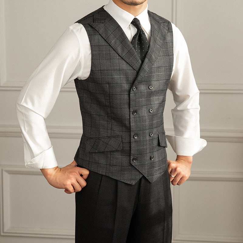 Retro Fashion Prince Plaid Slim Suit Vest