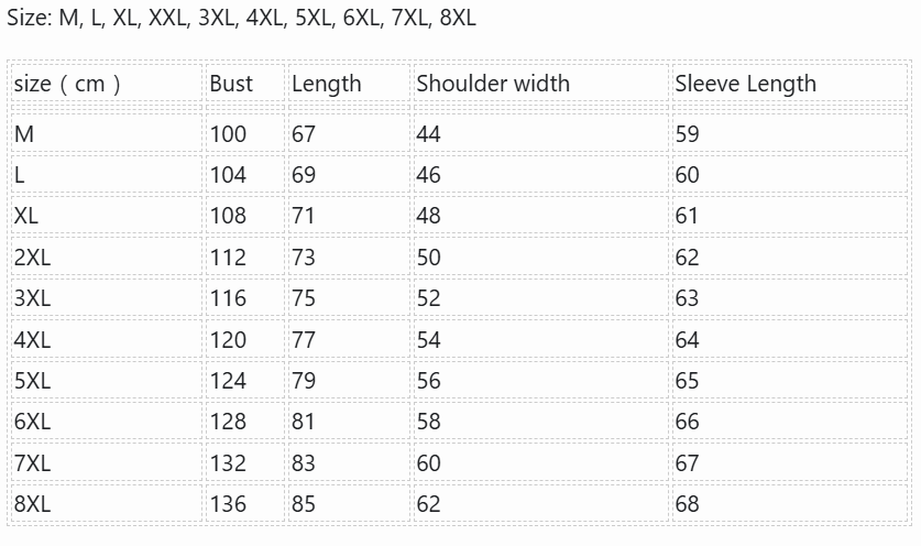 ✧ Size: M, L, XL, XXL, 3XL, 4XL, 5XL, 6XL, 7XL, 8XL