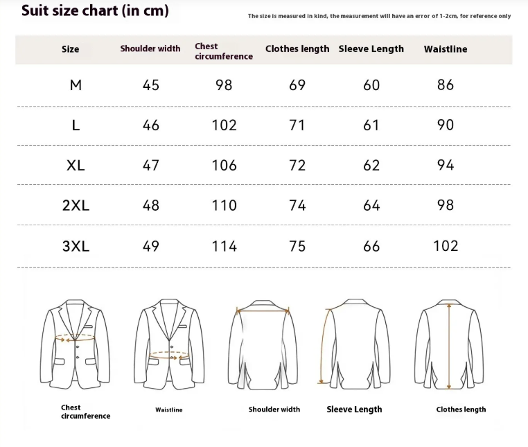 Comes in M, L, XL, 2XL, 3XL. These represent different size categories ranging from small to extra-large, allowing you to choose based on your body measurements.