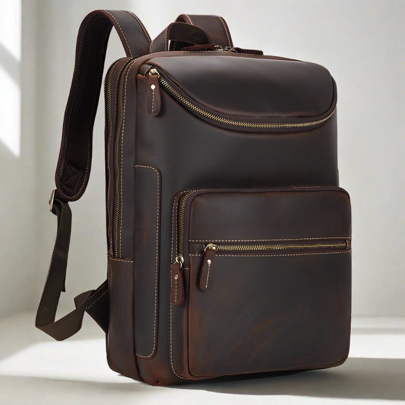 Versatility is key when it comes to our Leather Backpack Vintage Backpack. Whether you're exploring the city streets or traversing rugged terrain, its rugged construction and timeless design make it the perfect companion for any occasion. Wear it as a backpack for hands-free convenience, or carry it by the top handle for a more polished look. With its effortless versatility, our backpack seamlessly transitions from day to night, making it a must-have accessory for the modern man.